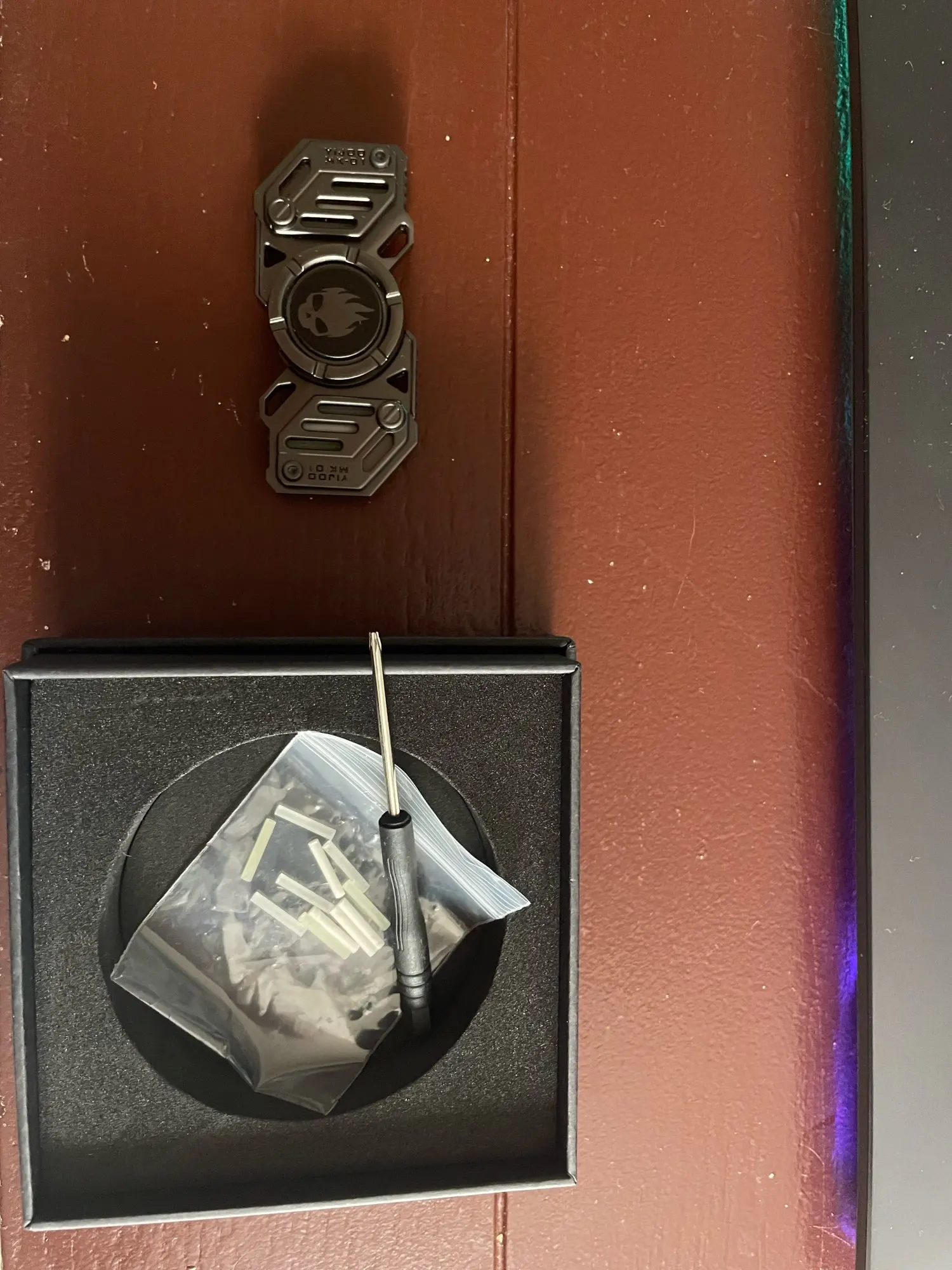 Aluminum alloy hand twist rod x 1+ luminous rod x 21+ spare bearing x 1+ metal purple light x 1+ gyro storage bag x 1+ armor removal piece x 1 +Screwdriver x 1